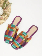 Shein Women's Fashionable Flat Sandals With Multiple Strap & Embellishments, Anti-Slip, Ideal For Vacation